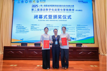 此次获奖,既是对我校酒店管理与数字化运营专业教学成果的肯定,也是对学子们专业能力与实践素养的认可。未来,学校将继续以各类技能竞赛为抓手,深化 “以赛促学、以赛促教、以赛促改” 的教学理念,不断优化专业课程体系,加强实践教学环节,培养更多适应行业发展需求的高素质技术技能人才。同时,也期待巴灵姝、张梦源两位同学在全国总决赛的舞台上再接再厉,再创佳绩,为学校续写新的荣光!